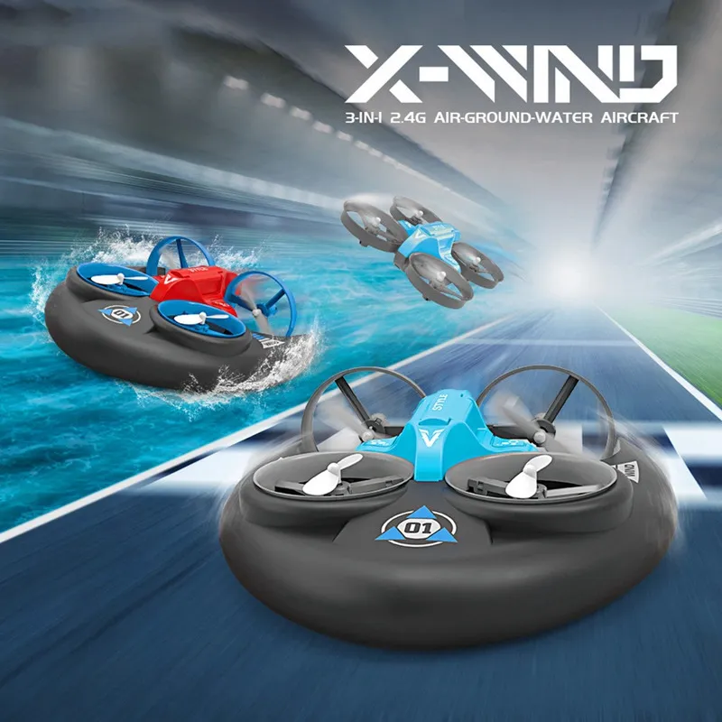 ¡La nueva sensación en juguetes RC! Disfruta de un vehículo multifuncional que puede volar como Dron, deslizarse sobre el agua como Lancha y correr en el suelo como Aerodeslizador. ¡Diversión total en un solo equipo!